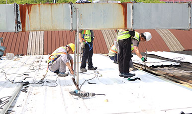 融合防水瓦的熱焊接工藝和彩鋼瓦機(jī)械固定連接工藝在連接方式、防水性能、連接強(qiáng)度、施工效率等方面存在區(qū)別,具體如下:連接方式熱焊接工藝:通過(guò)熱風(fēng)槍等設(shè)備產(chǎn)生高溫?zé)犸L(fēng),將融合防水瓦的高分子面層(如 TPO、PVC 等)加熱至熔融狀態(tài),使相鄰?fù)咂慕涌谔幦廴诓⒐袒纬膳c基材同質(zhì)的無(wú)縫連接。機(jī)械固定連接工藝:利用自攻釘、螺栓、螺母等機(jī)械緊固件,將彩鋼瓦固定在屋面檁條或其他支撐結(jié)構(gòu)上,通...