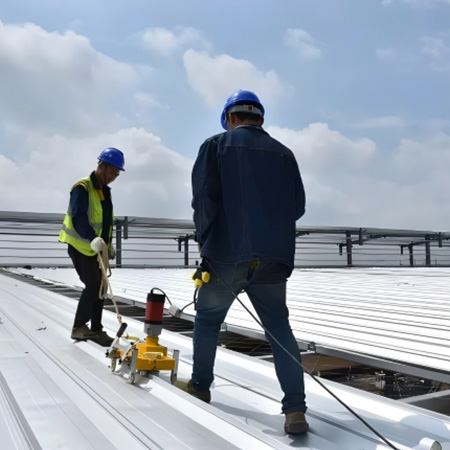 海美防水瓦以鋼板為基板,表面貼覆具有防水防腐功能的TPO/PVC卷材(熱塑性聚烯烴類防水卷材),是海美金屬推出的新一代防水防腐屋面建筑材料。海美防水瓦主要特點(diǎn)就是在各類環(huán)境下不易生銹不易漏水,使用熱風(fēng)焊接進(jìn)行相連,覆蓋全部裸露的縫隙,在使用過程中可以達(dá)到蓄水不滲透的效果,防水效果好,同時(shí)還有較好的抗風(fēng)揭性能和耐老化性能,為鋼結(jié)構(gòu)建筑屋面提供了長久的防護(hù)。