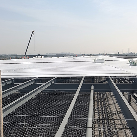 海美防水瓦以鋼板為基板,表面貼覆具有防水防腐功能的TPO/PVC卷材(熱塑性聚烯烴類防水卷材),是海美金屬推出的新一代防水防腐屋面建筑材料。海美防水瓦主要特點就是在各類環境下不易生銹不易漏水,使用熱風焊接進行相連,覆蓋全部裸露的縫隙,在使用過程中可以達到蓄水不滲透的效果,防水效果好,同時還有較好的抗風揭性能和耐老化性能,為鋼結構建筑屋面提供了長久的防護。
