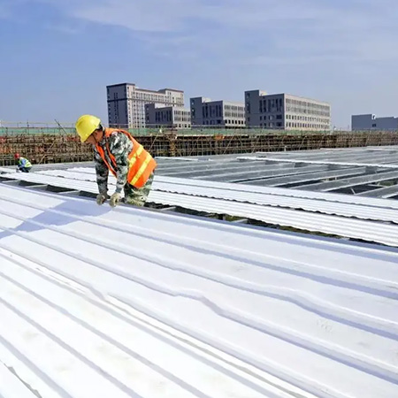 TPO/PVC鋼塑復(fù)合防水瓦以鋼板為基板,表面貼覆具有防水防腐功能的TPO/PVC卷材(熱塑性聚烯烴類(lèi)防水卷材),是一款防水防腐屋面建筑材料。TPO/PVC鋼塑復(fù)合防水瓦主要特點(diǎn)就是在各類(lèi)環(huán)境下不易生銹不易漏水,使用熱風(fēng)焊接進(jìn)行相連,覆蓋全部裸露的縫隙,在使用過(guò)程中可以達(dá)到蓄水不滲透的效果,防水效果好,同時(shí)還有較好的抗風(fēng)揭性能和耐老化性